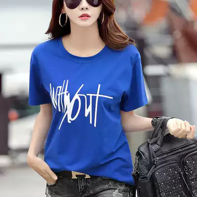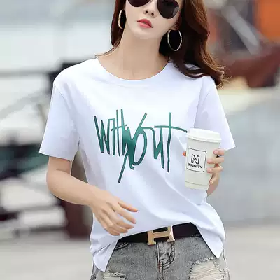 Cotton short sleeve T-shirt female 2021 summer new Korean loose slim large size printed foreign pie top base shirt