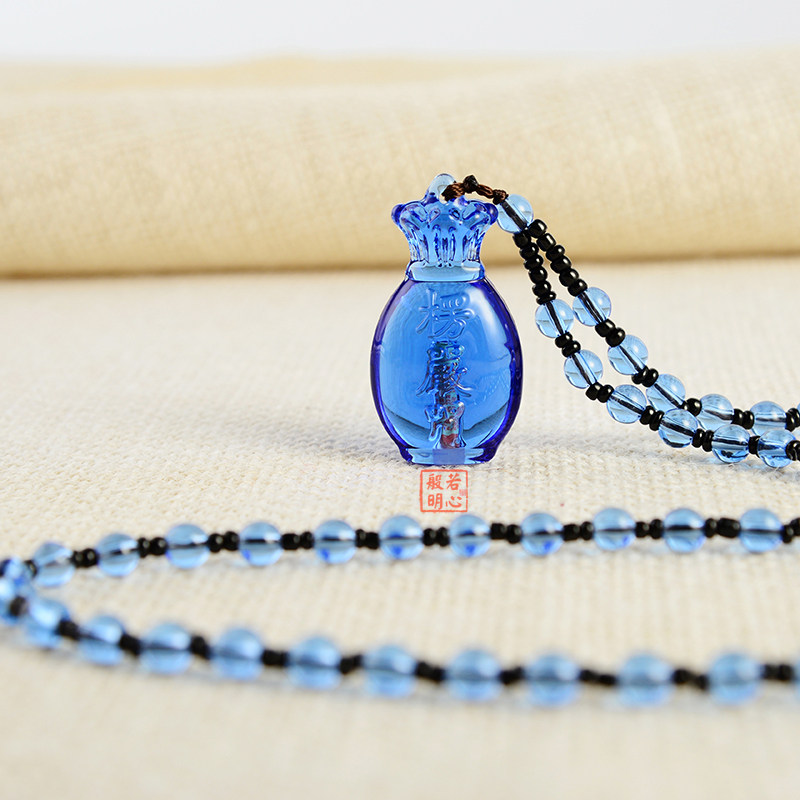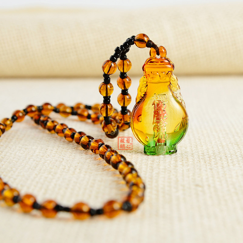 Blue yellow color gourd pendant Shurangama mantra pendant men and women couple crystal glass jewelry