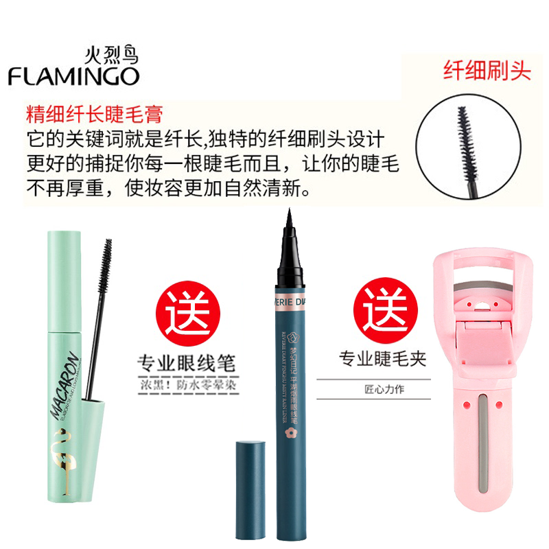Big-name flamingo mascara waterproof slender curly does not smudge female net red popular eyeliner eyelash curler