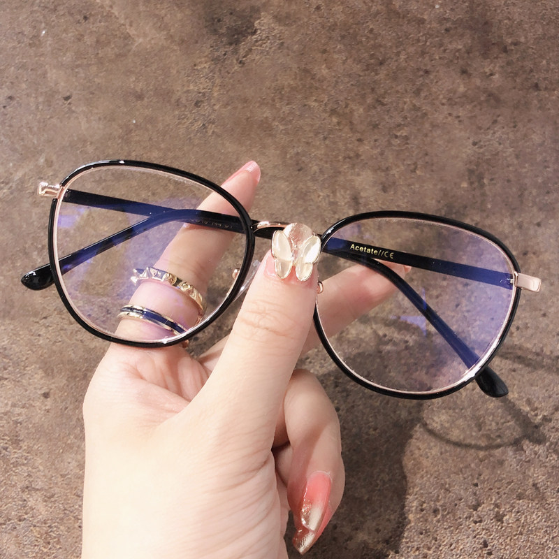 Smog blue myopia glasses female without makeup can be equipped with a degree of generous face round face male Korean version of the tide web celebrity eye frame