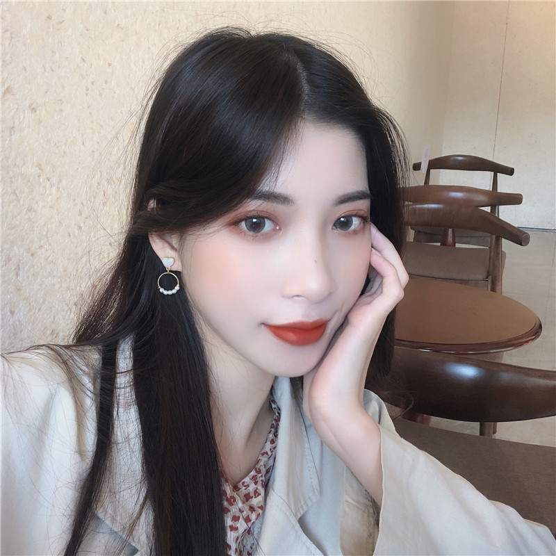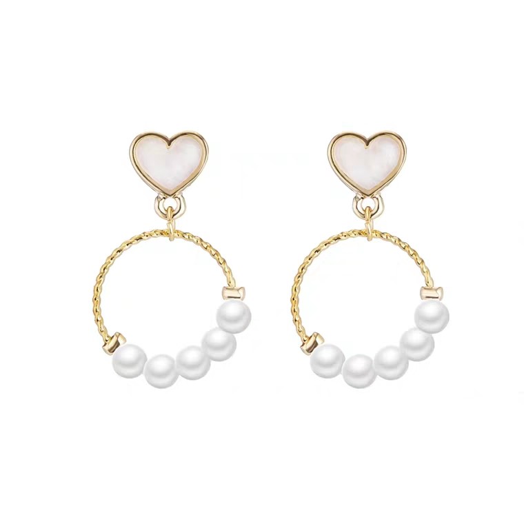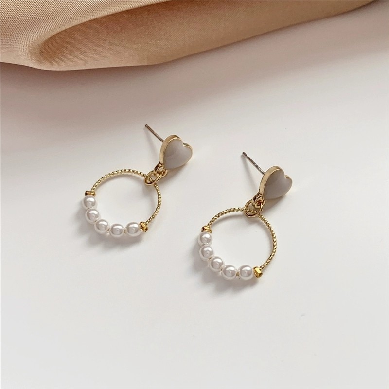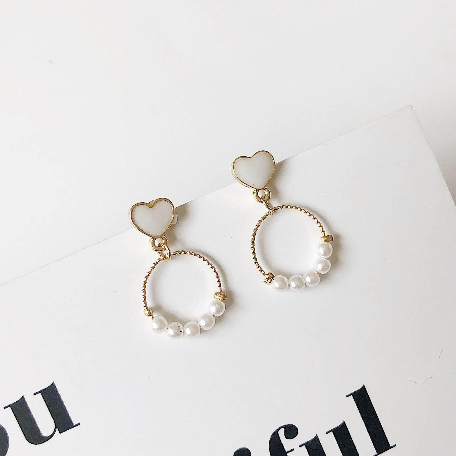 S925 Silver Korea Temperament Brief Small Round Ring Geometric Love Shaped Pearl Earrings Sweet girl Earrings 2021 New