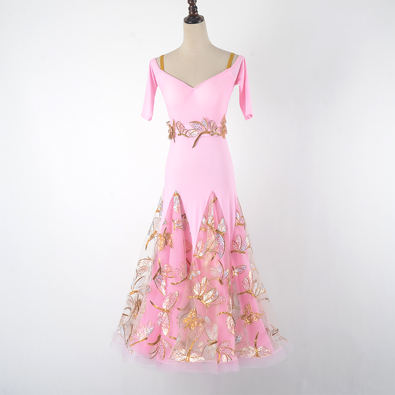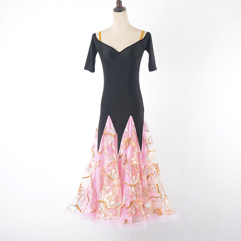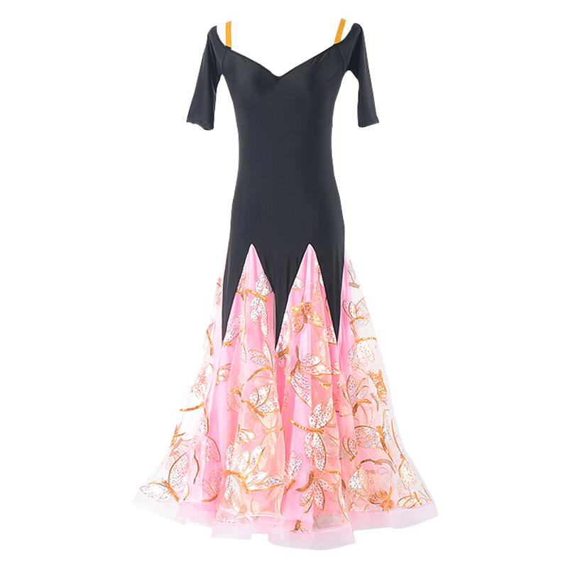 Morden Dance Ocean Dress Autumn Winter Harness Dew Back National Mark Dance Tango Performance Dress Bright Piece Social Dance Large Hem Skirt