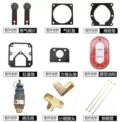 3 5 7 The whole machine does not have a power nose crankshaft connecting rod connecting rod Bush piston piston ring valve plate assembly short aluminum tube long aluminum tube check valve safety valve pulley cylinder head air filter element assembly F-type joint assembly