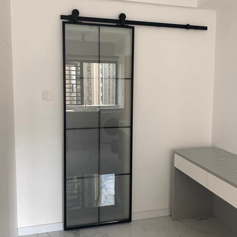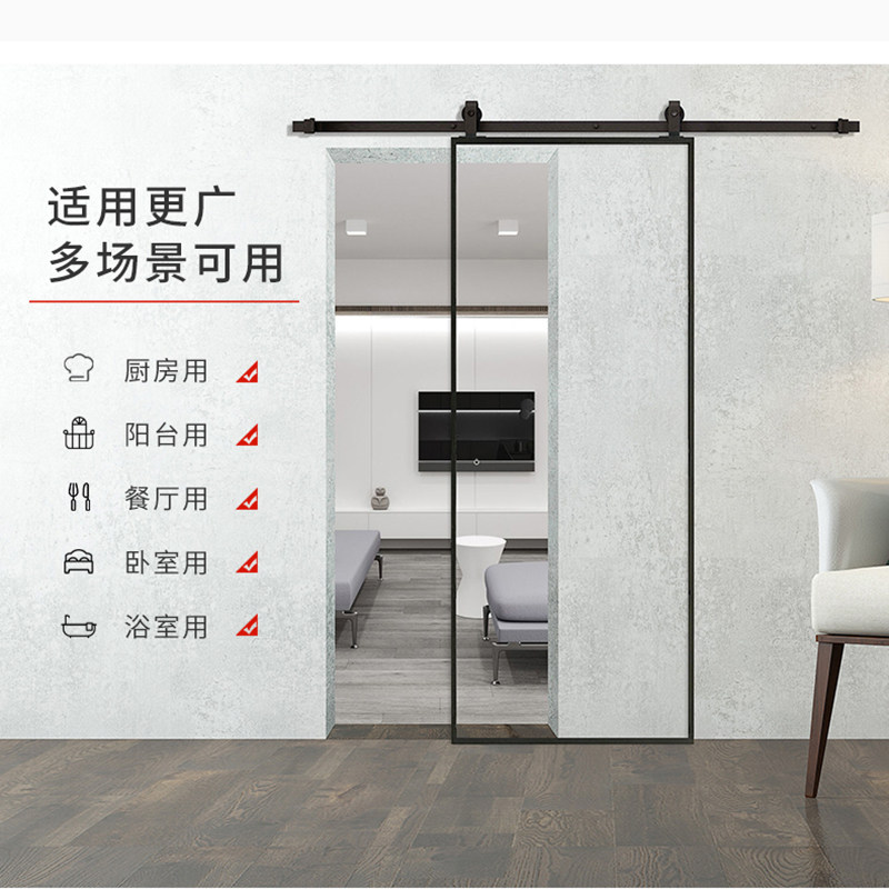 Barn powder room toilet kitchen balcony partition bedroom tempered glass extremely narrow simple frame hanging wheel sliding door
