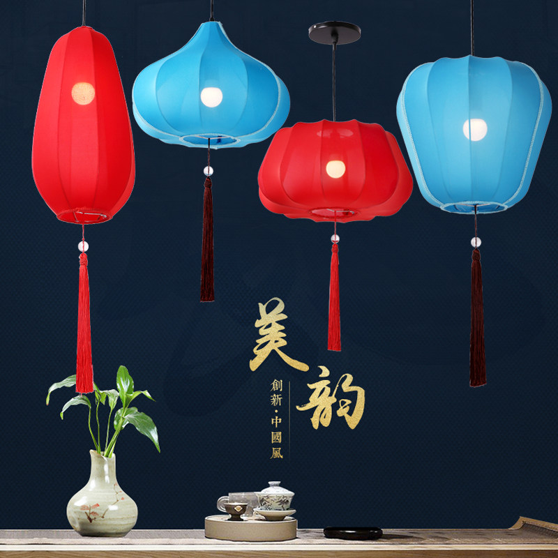 New Chinese style Chinese style chandelier dining room hotel lantern teahouse aisle fabric chandelier oriental red decorative lantern