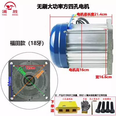 Futian electric tricycle motor brushless High Power square cover 18 teeth Futian differential motor 60V72V