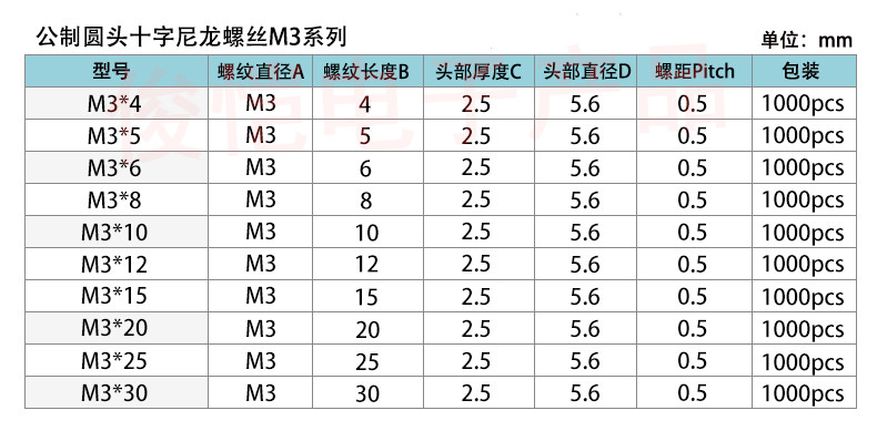 M3 * 4 (one thousand) M3 * 5 (one thousand) M3 * 6 (one thousand) M3 * 8 (one thousand) M3 * 10 (one thousand) M3 * 12 (one thousand) M3 *