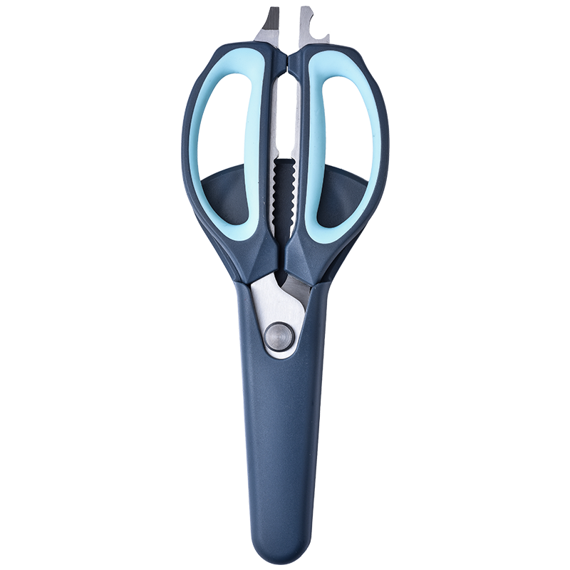 Kitchen scissors (blue) with magnetic jacket Kitchen scissors (pink) without magnetic jacket Kitchen scissors (blue + magnetic jacket) + dual sharpener (sharpenable kitchen knife + scissors) Kitchen scissors (pink + non-magnetic jacket) + dual sharpener (sharpenable kitchen knife + scissors)