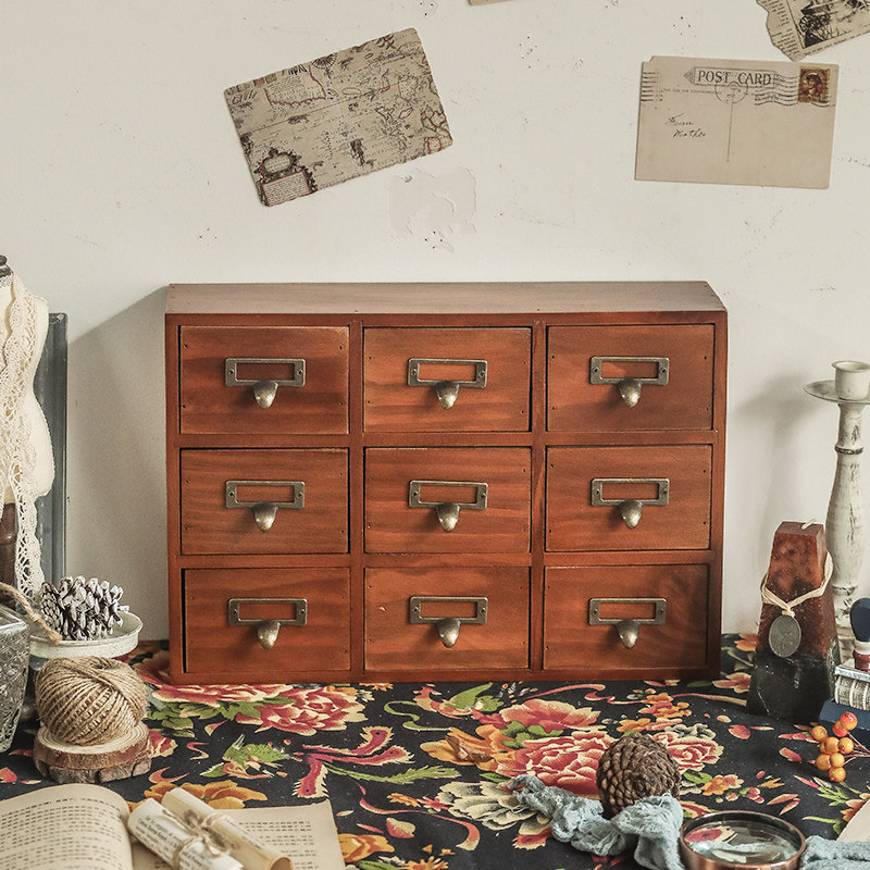 Desktop storage box wooden Nine Palace grid small drawer type multi-layer jewelry retro seal solid wood grid lockers