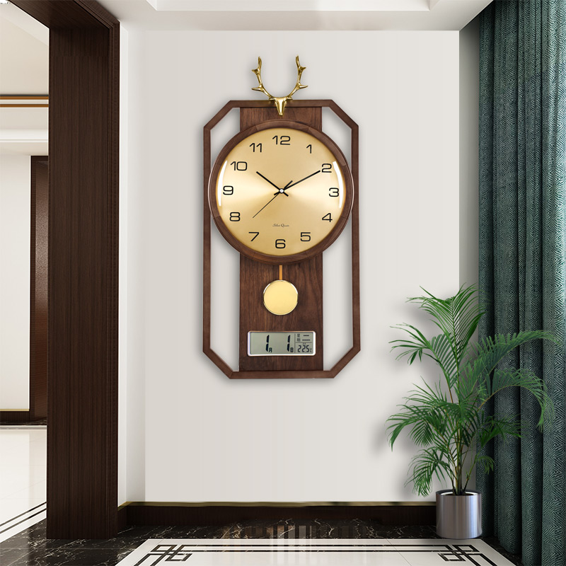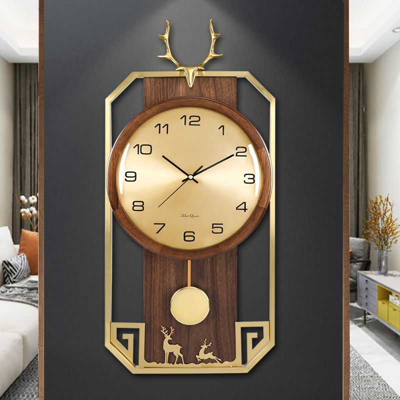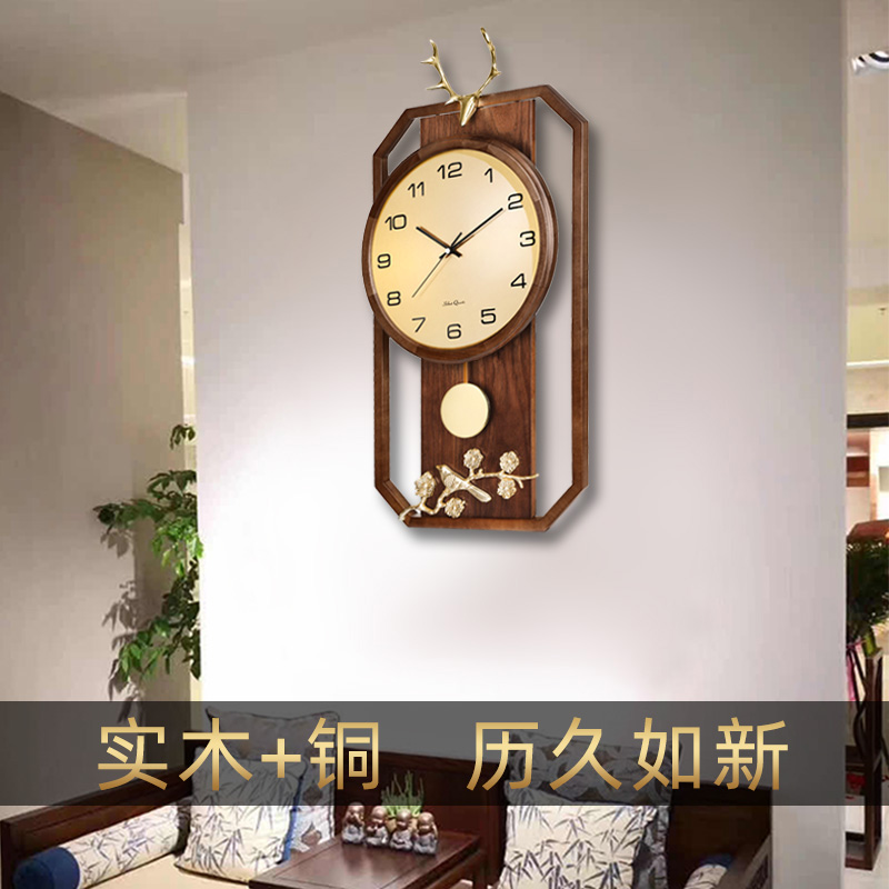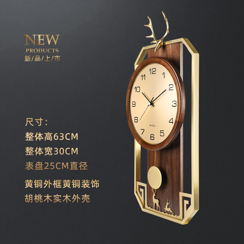 New New Chinese light luxury wall clock living room creative luxury solid wood clock brass decoration Chinese style clock