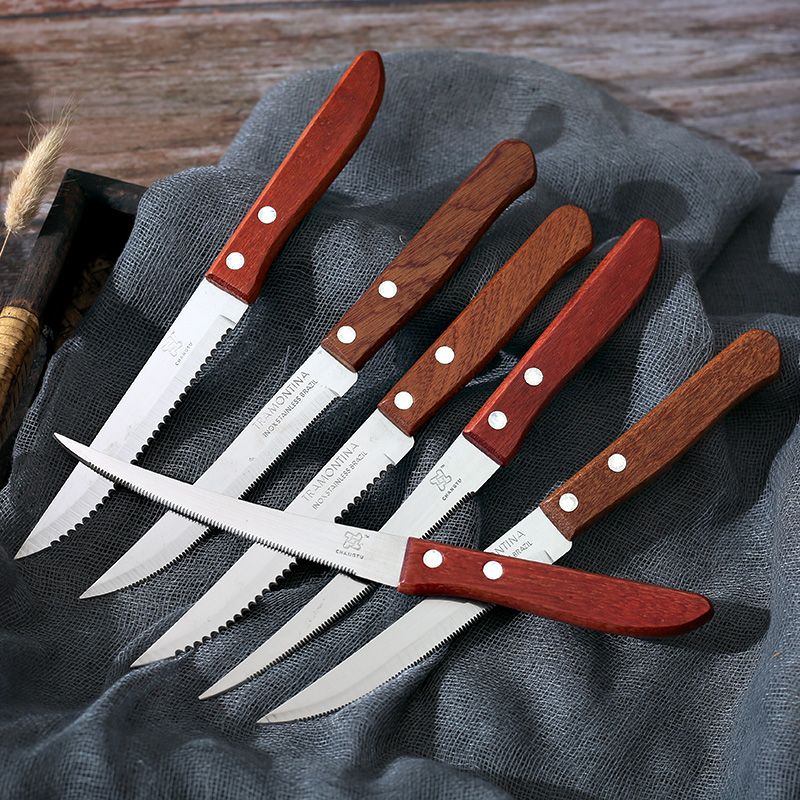 Stainless Steel Meat Saw Outdoor Barbecue Wooden Handle Serrated Knife Bread Barbecue Knife Beef Steak Knife Steak Knife Western Food Knife