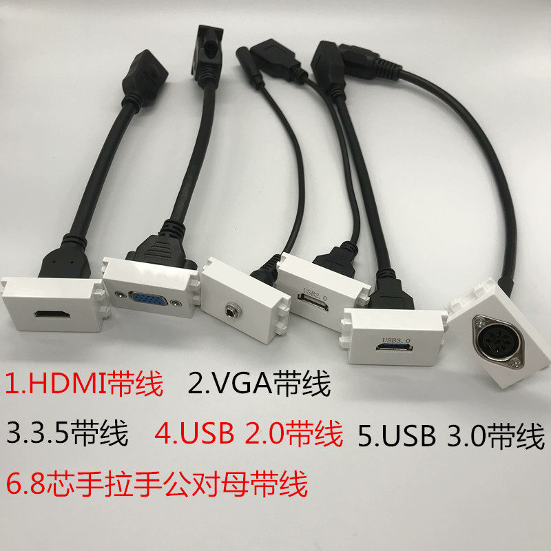 120 concealed hdmi HD usb audio 3 5-hole power panel socket HDMI headphone USB straight plug 5 holes