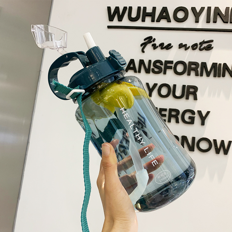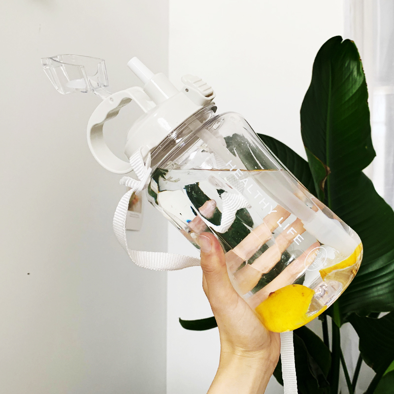 Large capacity water cup for women with straw portable cup plastic water bottle cute 2000ml oversized male space kettle