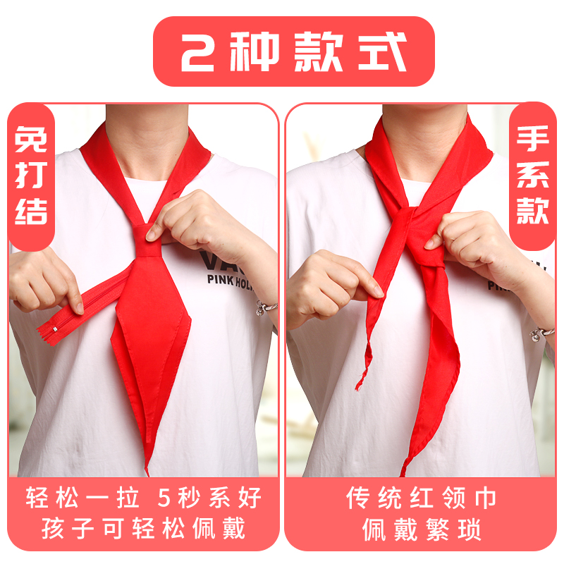 Primary school students universal red scarf knotted-free cotton zipper style 16th grade 1 2 meters standard size children's silk cotton cloth high-grade third grade does not fade faded satin