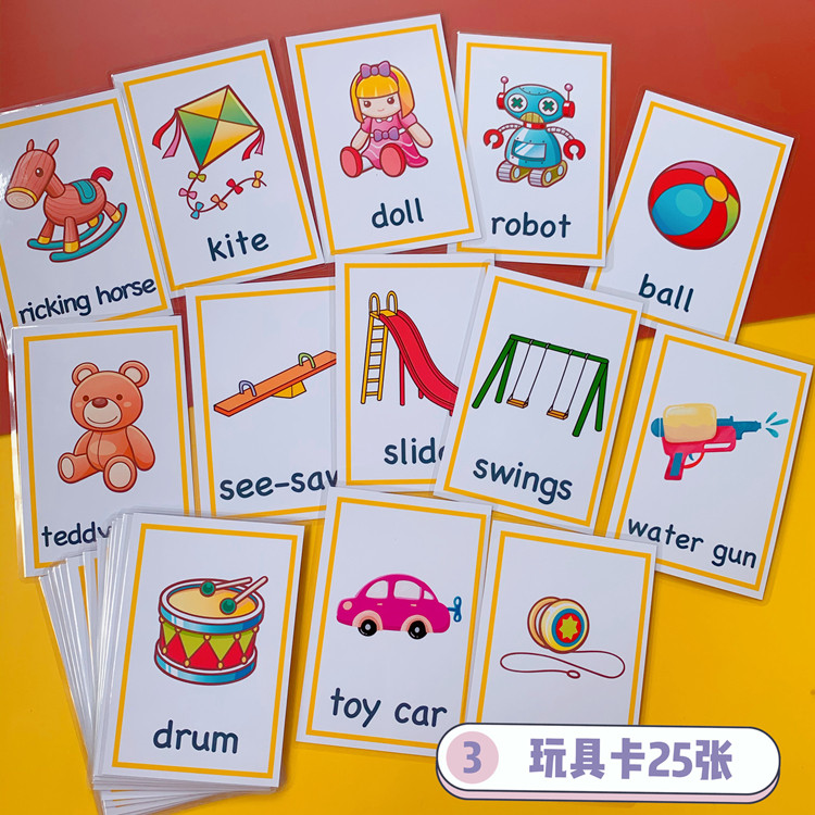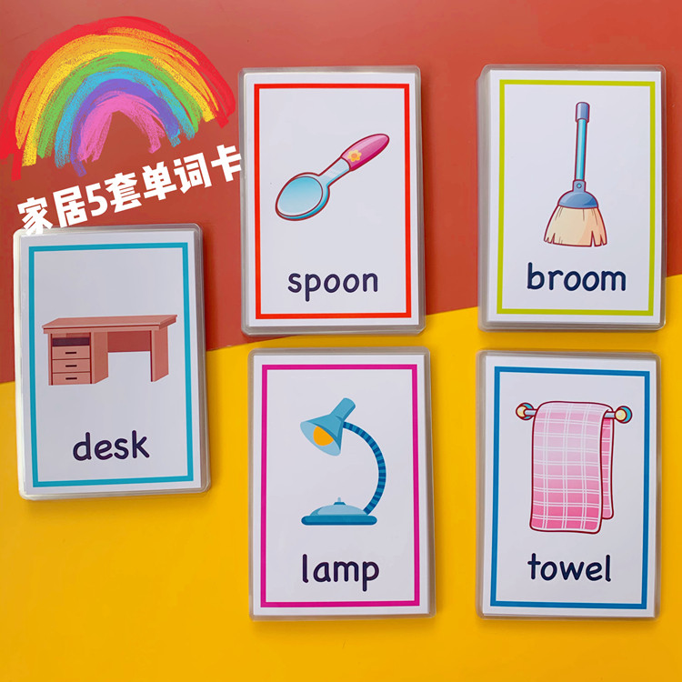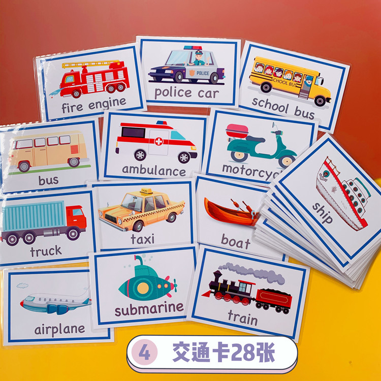 English plastic-sealed waterproof theme single-word card kindergarten teaching aids baby children's early education puzzle English map flash card