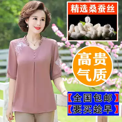 Hangzhou mulberry silk mother mid-sleeve T-shirt foreign school girls shirt middle-aged and elderly summer short-sleeved silk top