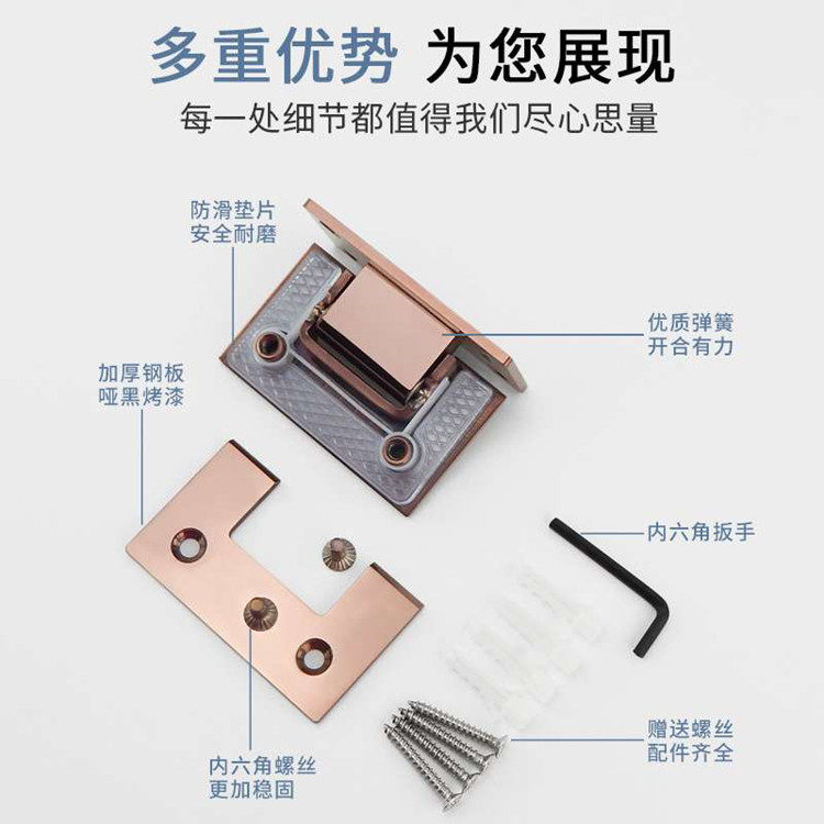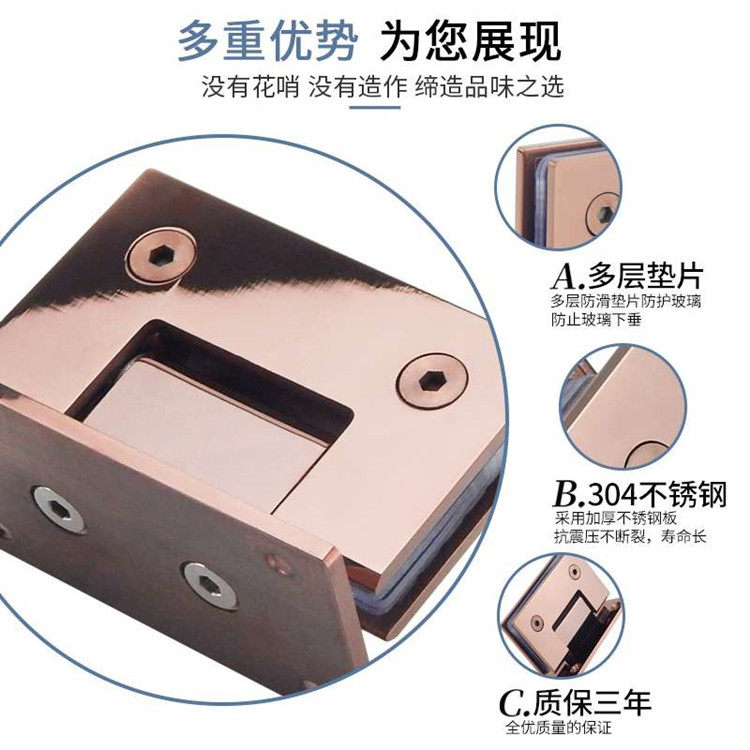 304 stainless steel mirror bright rose gold 90 degree bathroom clip Glass door hinge shower room bathroom clip