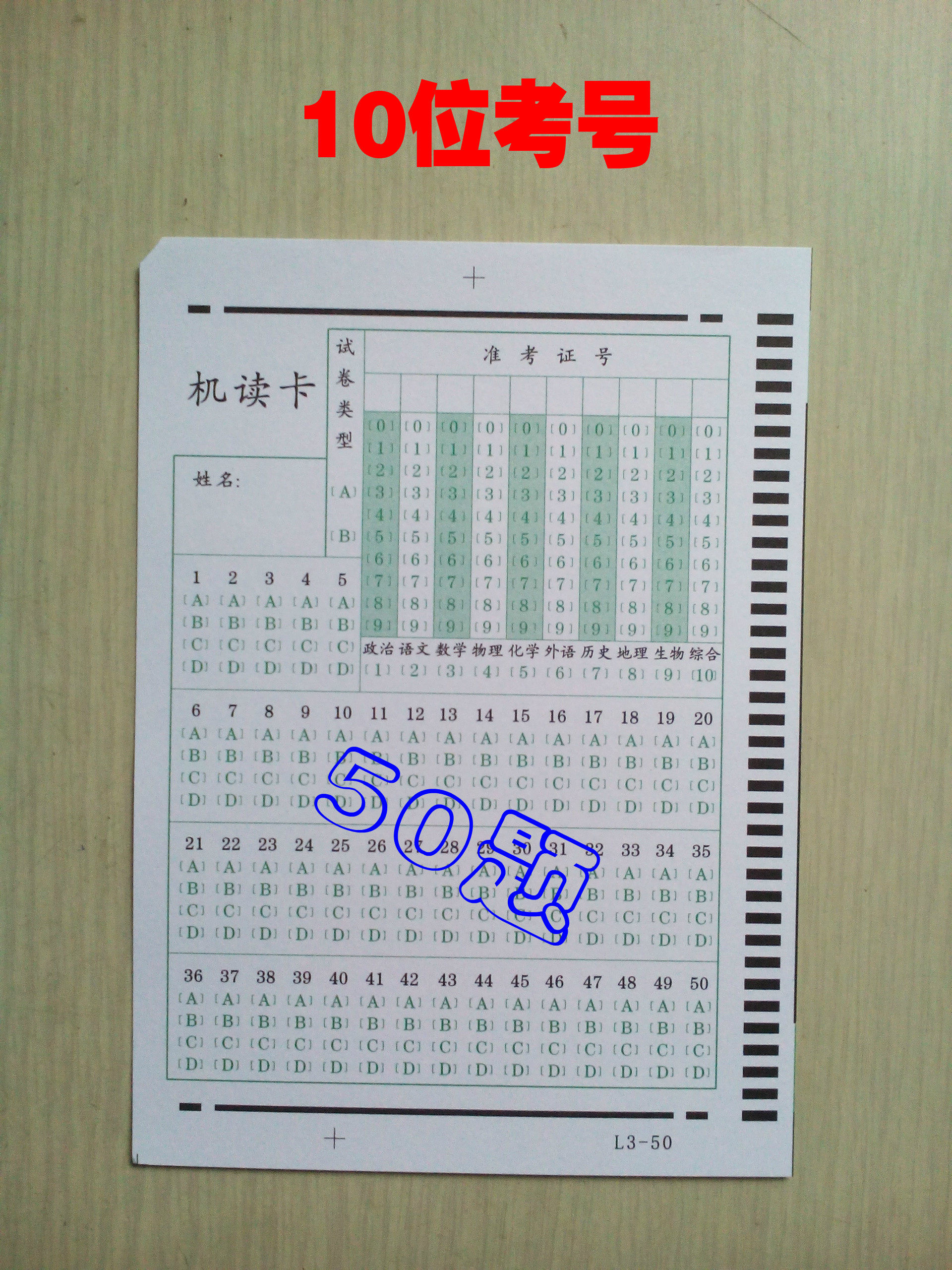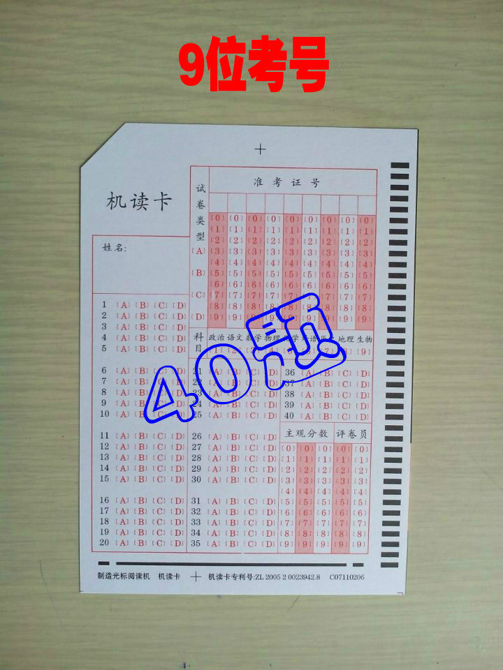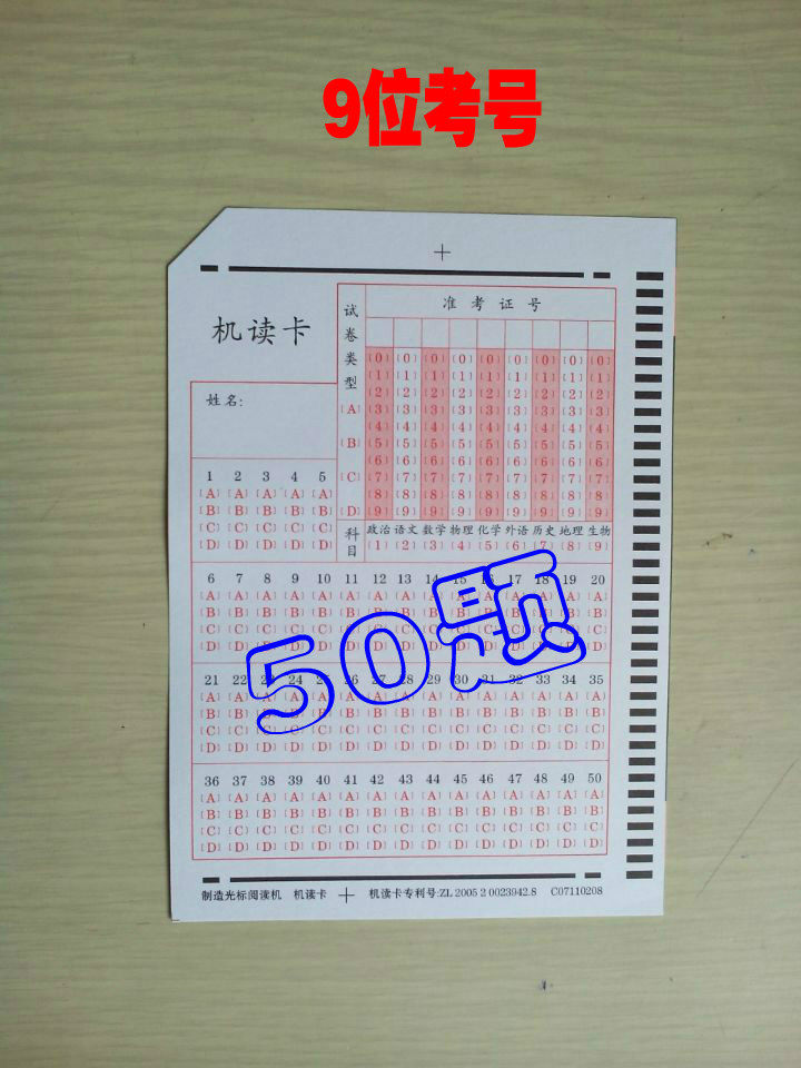 100 50-question red cards (9-digit test numbers) 100 40-question red cards (9-digit test numbers) 100 50-question green cards (10-digit test numbers) 500 50-question red cards (9-digit test numbers)