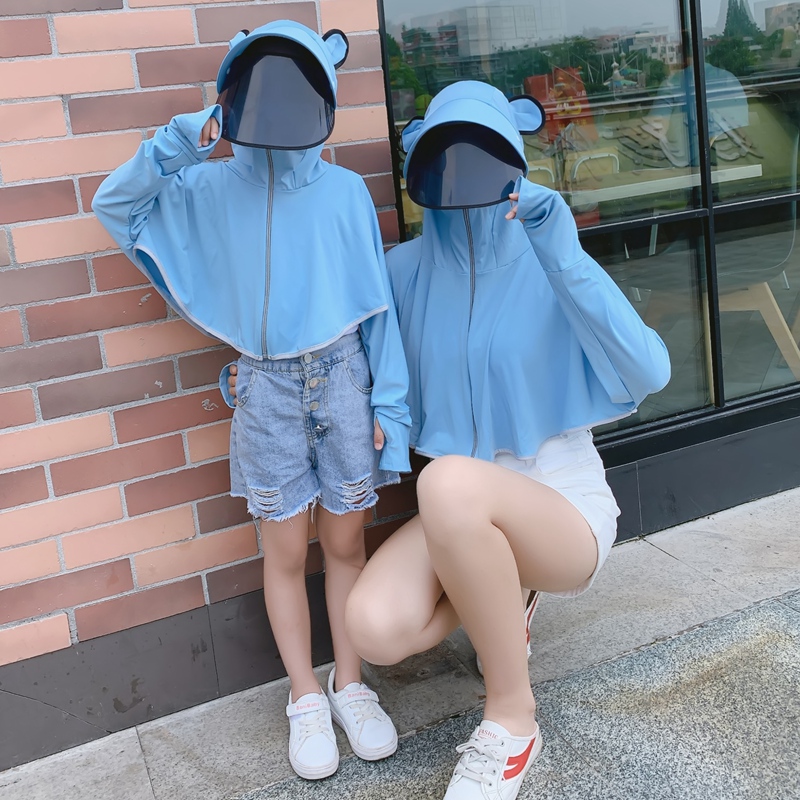 Children's sunscreen clothing women's Xia Bingsi hooded girls and boys thin breathable UV shirts small, medium and large children's baby