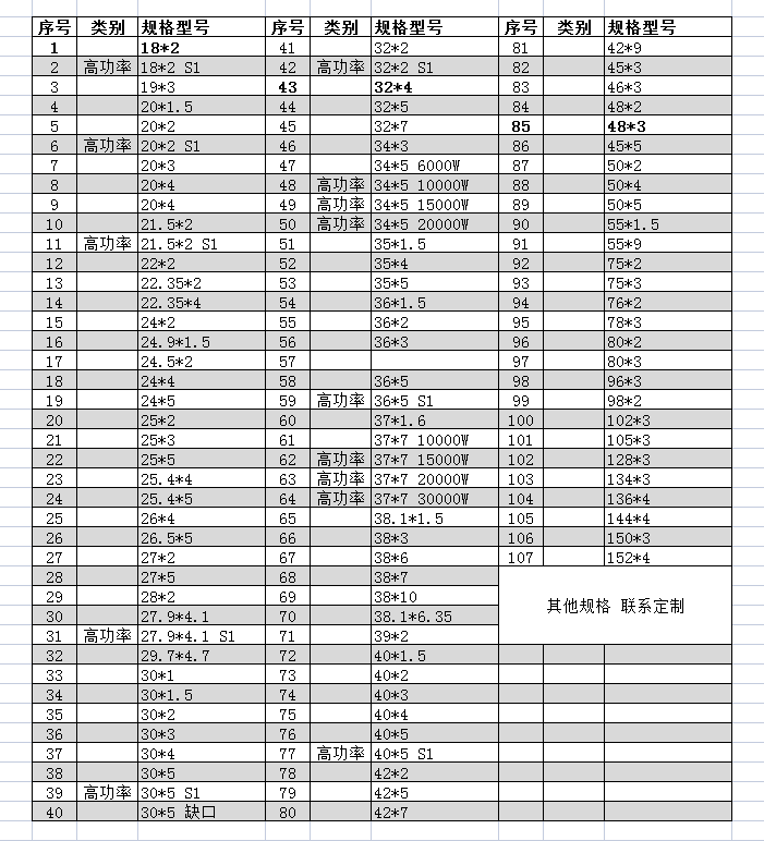 18*218*2 (high power)20*220*2(high power)20*320*421 5*222 35*422 35*4(1000)