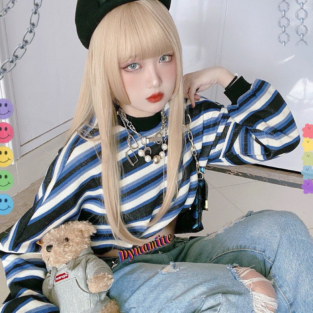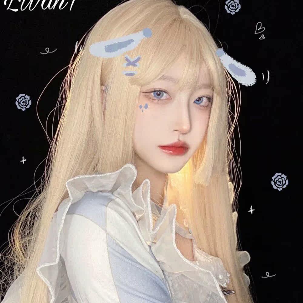 Ji hair style wig female long hair lisa with the same gold princess cut long straight hair lolita natural realistic full headgear