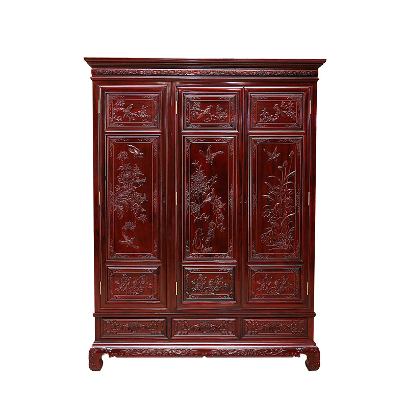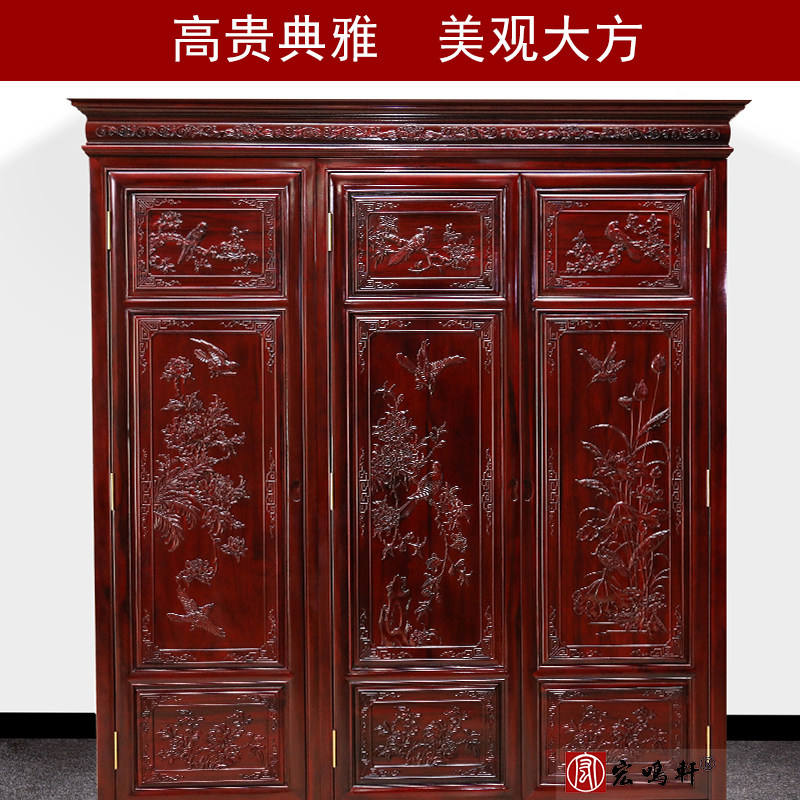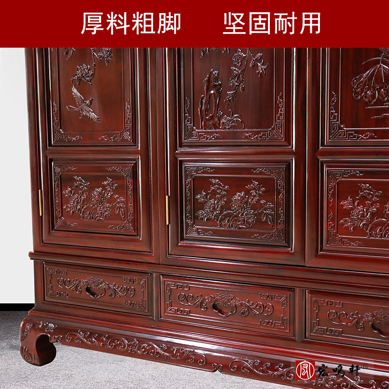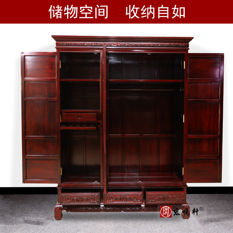 Mahogany three-door wardrobe bedroom furniture Chinese style solid wood top box cabinet South American rosewood four-door national color sky fragrance large wardrobe
