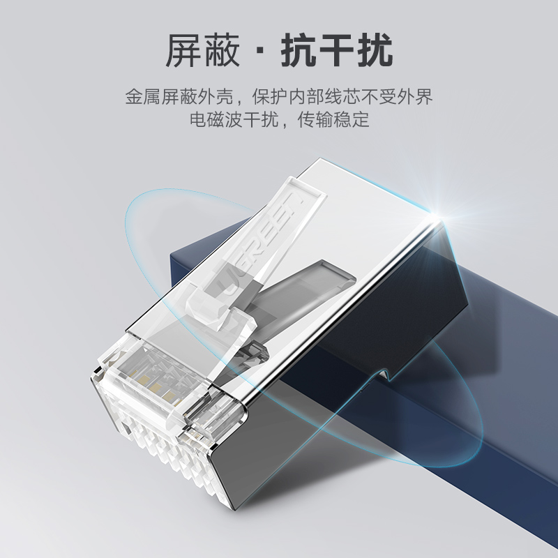 Green Union crystal head ultra five 5 six categories cat6e shielded rj45 one thousand trillion computer network route Internet to connector connector