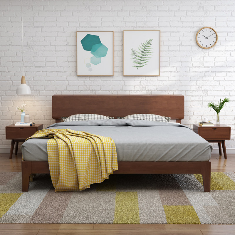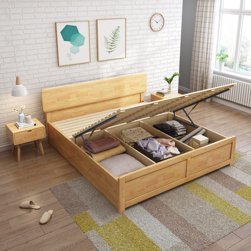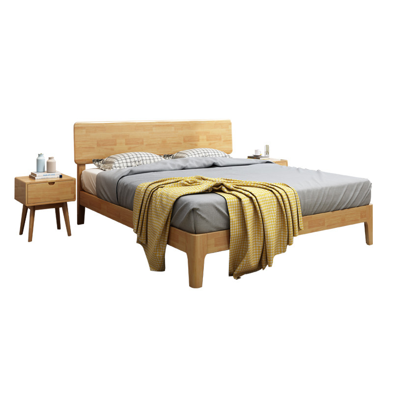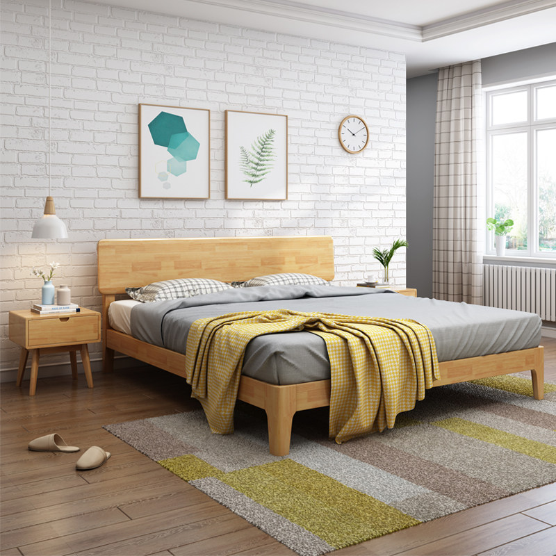 Factory direct sale solid wood bed modern minimalist economical plank bed single bed high box bed Nordic style bed homestay bed