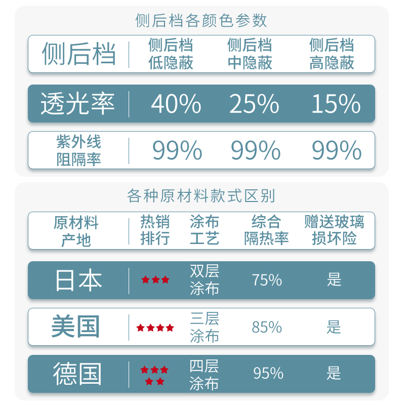 The whole car Japanese double-layer film material (hidden side and rear of the high-definition front gear) the whole car's Japanese double-layer film material (high-definition front gear high hidden side rear) the whole car's American series three-layer film material (high-definition front gear middle hidden side