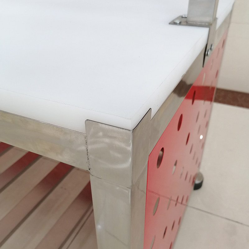 Meat selling workbench Stainless steel pork dividing table Meat cutting console PE board Supermarket workbench meat rack Meat chopping table