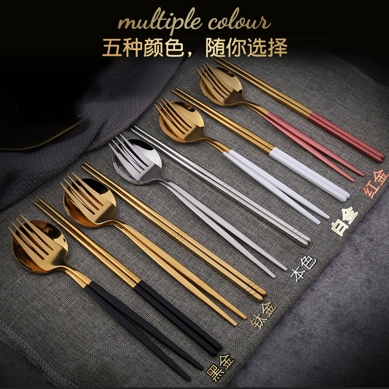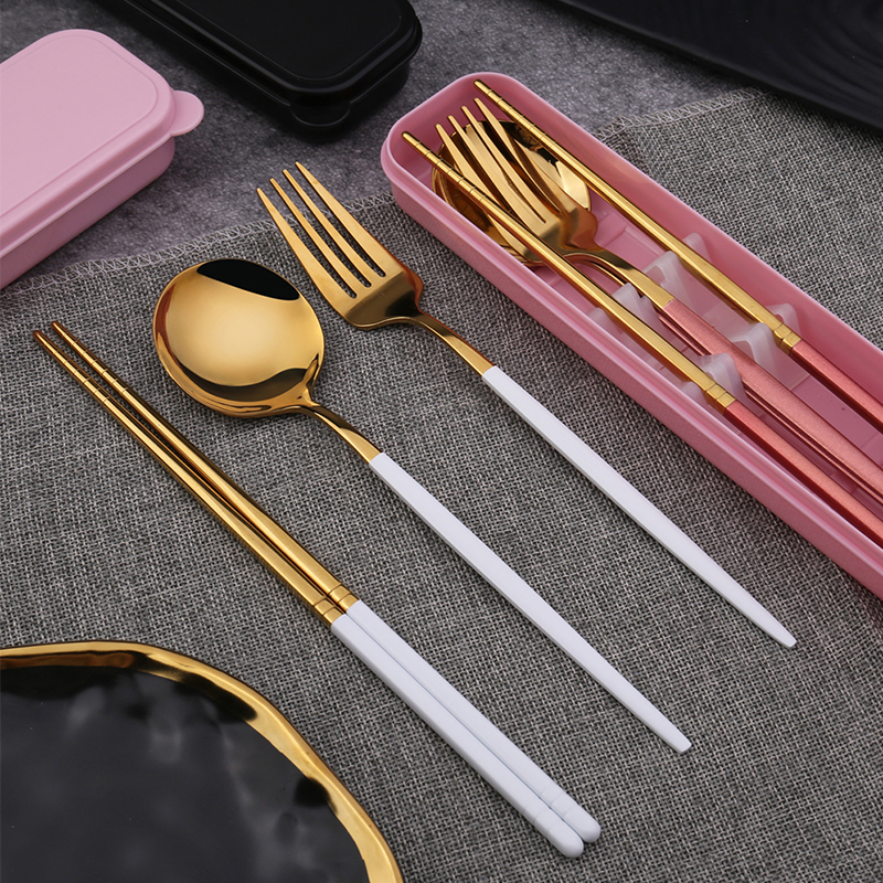 True Color - 3 sets of chopsticks, forks and spoons Pink Gold - 3 sets of chopsticks, forks and spoons Platinum - 3 sets of chopsticks, forks and spoons