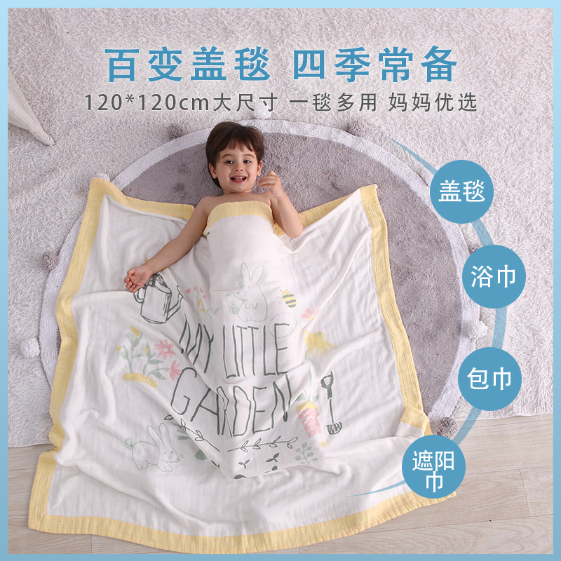 Four Floors Bamboo Fiber Gauze Baby Cover Blanket Summer Air Conditioning House Baby Blanket Spring Autumn Children Thin Blanket 120 * 120