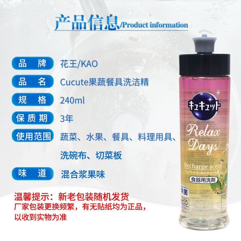 Flower king fruits and vegetables tableware wash and finish Japanese imported oil removing bacteria to taste mixed berries fruity 240ml * 3 bottles