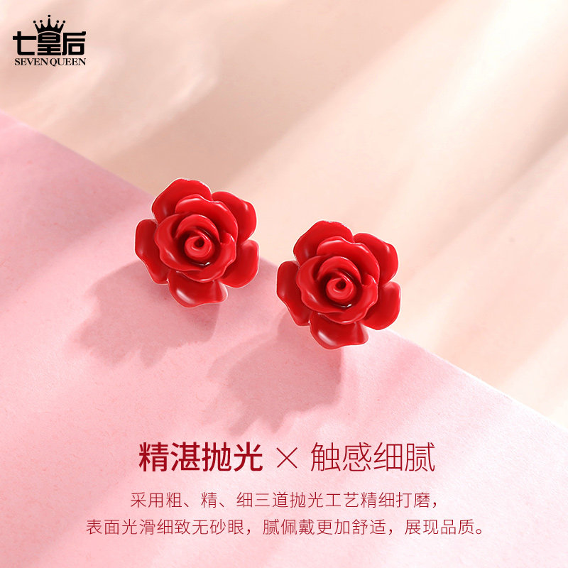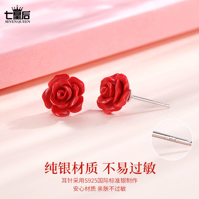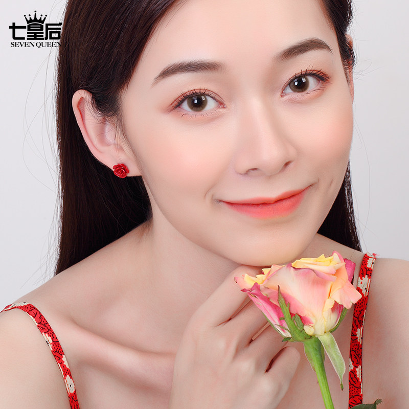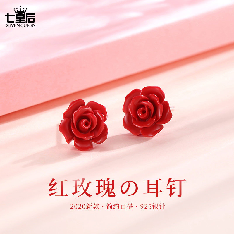 925 silver needle red rose flower earrings women simple small INS small design earrings for 2020 new earrings