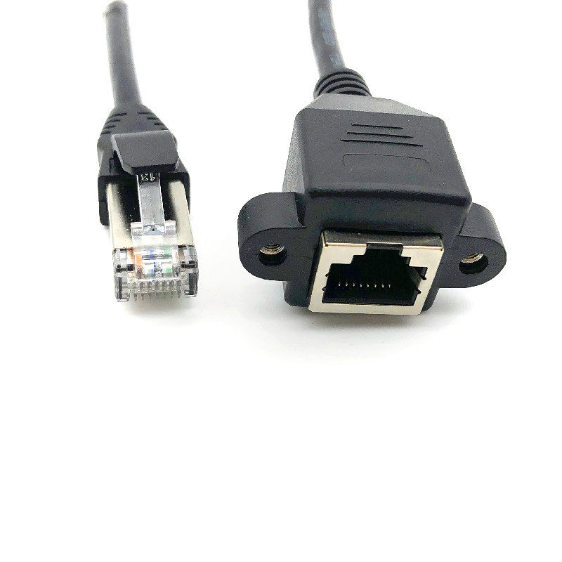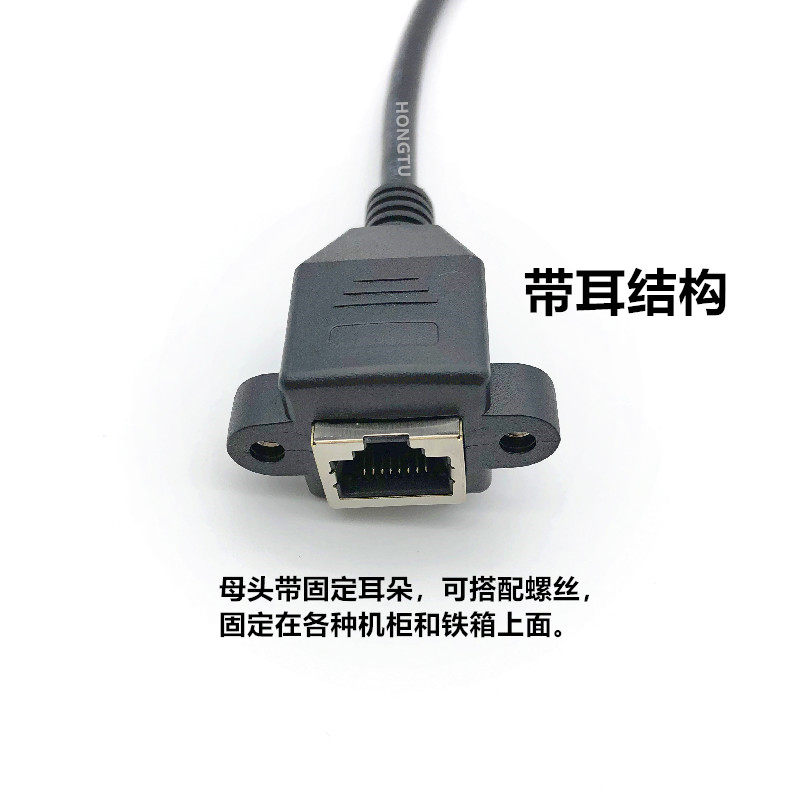 RJ45 Internet interface with ear extension cord Internet line lengthening public to female connector with screw holes can be fixed
