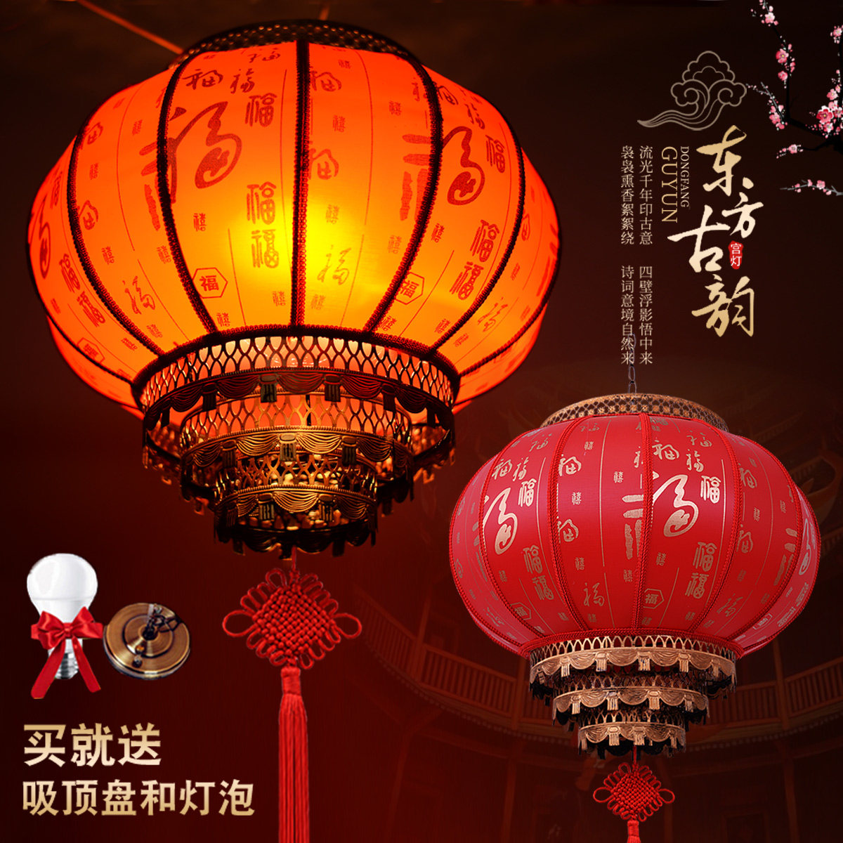 Sheepskin lantern pendant Outdoor balcony pair of chandeliers Mid-Autumn Festival door waterproof Wedding happy word rotating led palace lamp