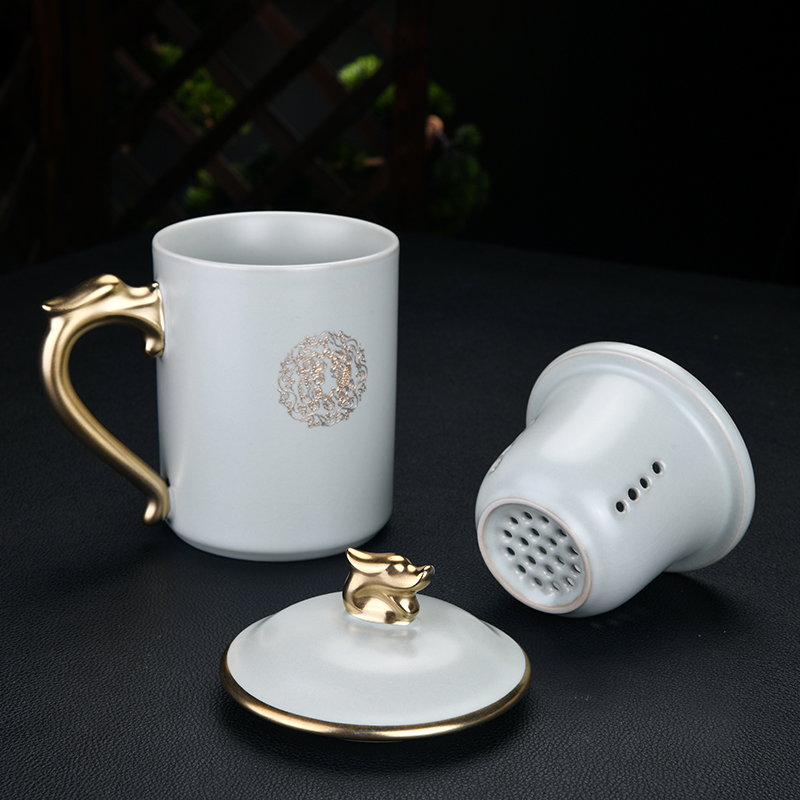 Open piece Ru kiln office cup Ru porcelain bubble tea cup ceramic retro Chinese tea separation filter with lid tea cup gift