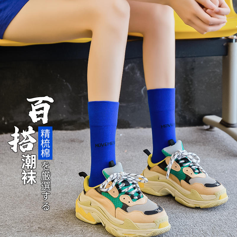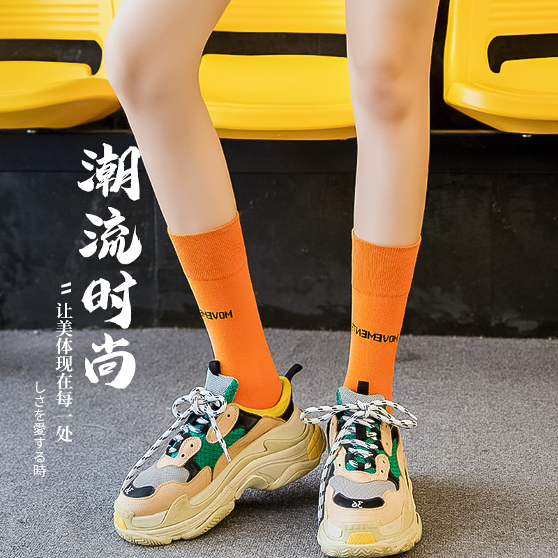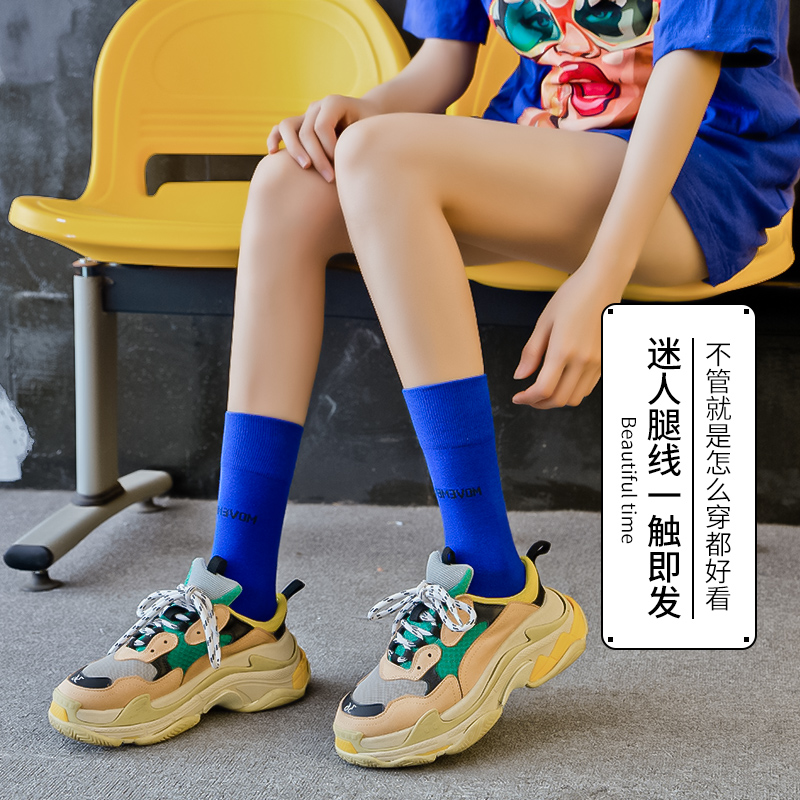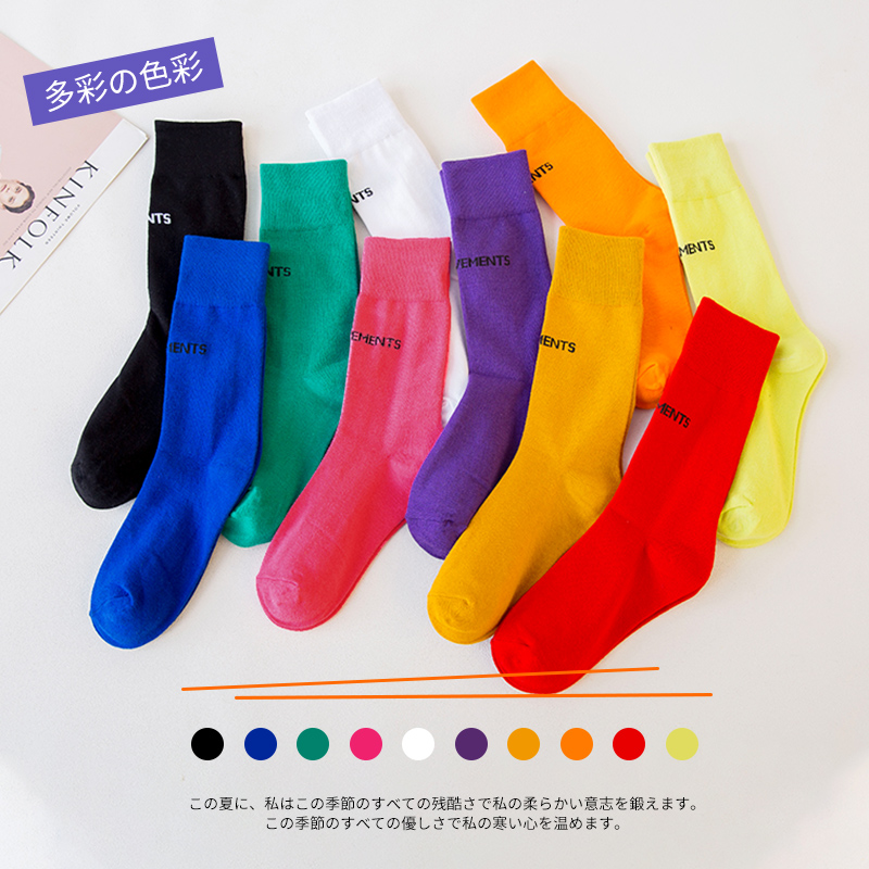 Socks women's spring and autumn thin mid-tube socks ins tide long tube color candy color net red sports stockings high tube cotton