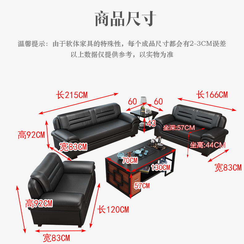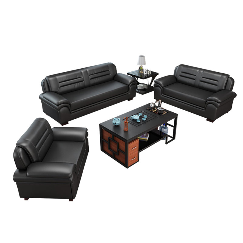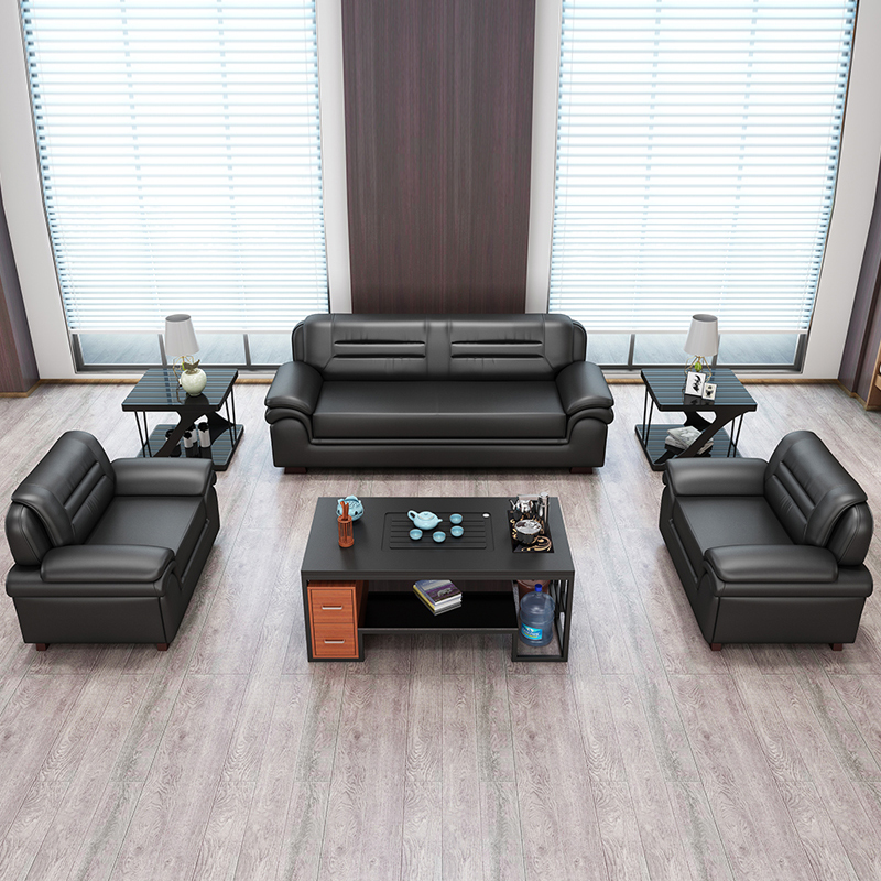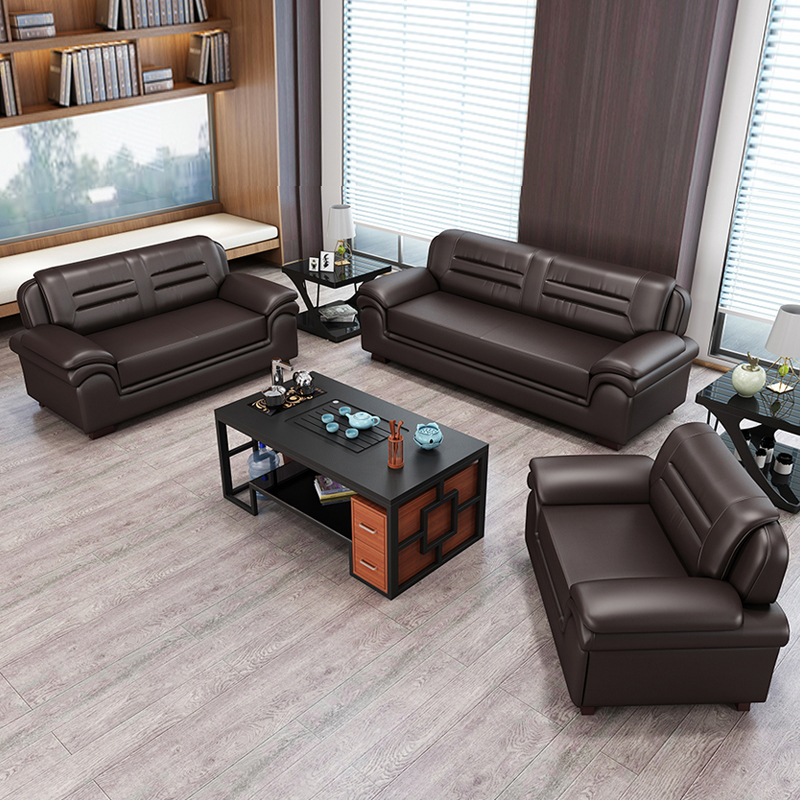 Office sofa Reception room minimalist Business trio genuine leather guests Casual Office Sofa Tea Table Combo Suit