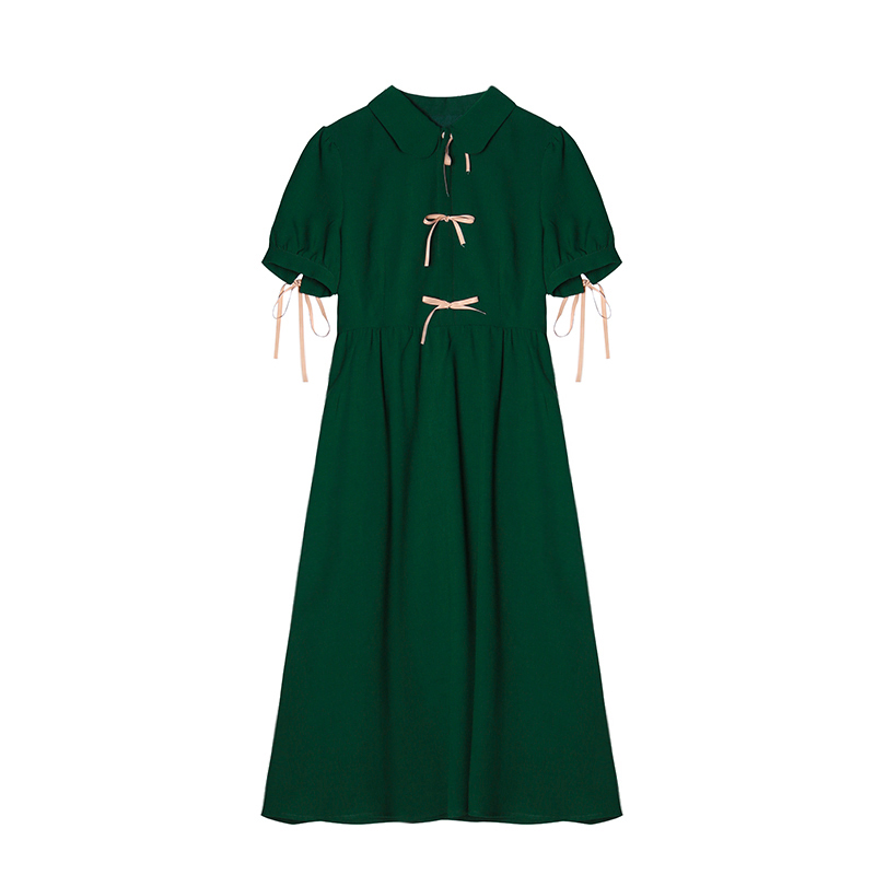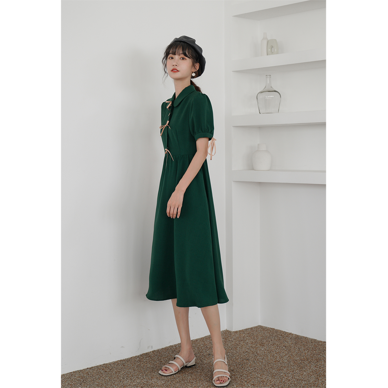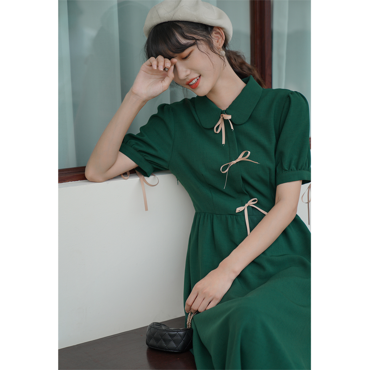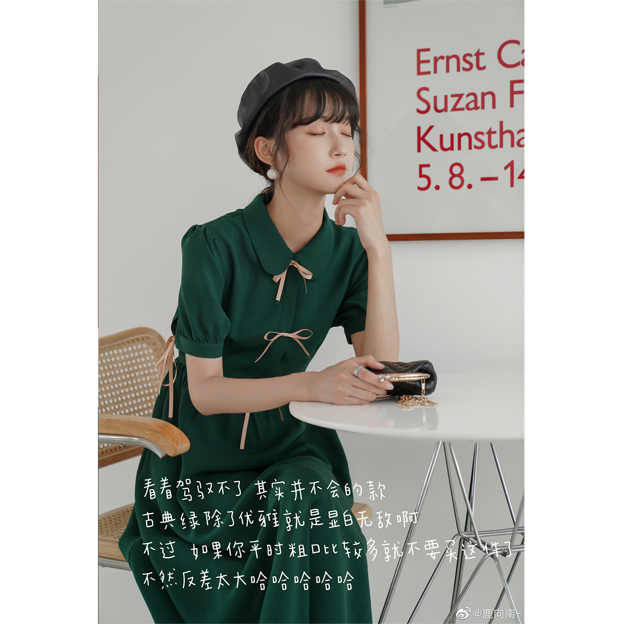Deer Southward Dress Woman New 2022 Summer Green Temperament Style Small Crowdsourced waist in Long version Butterfly lacing dress