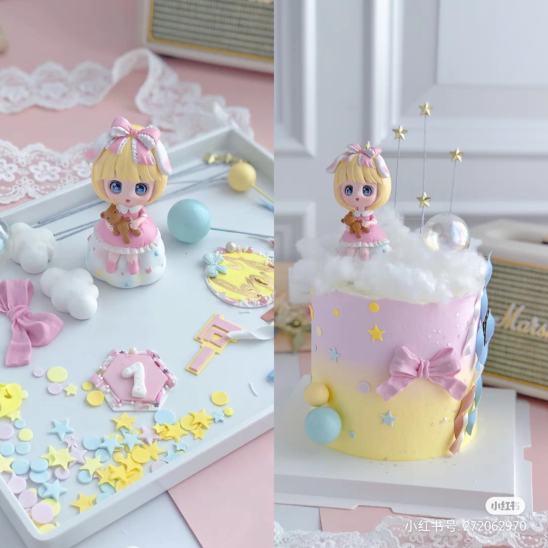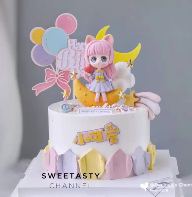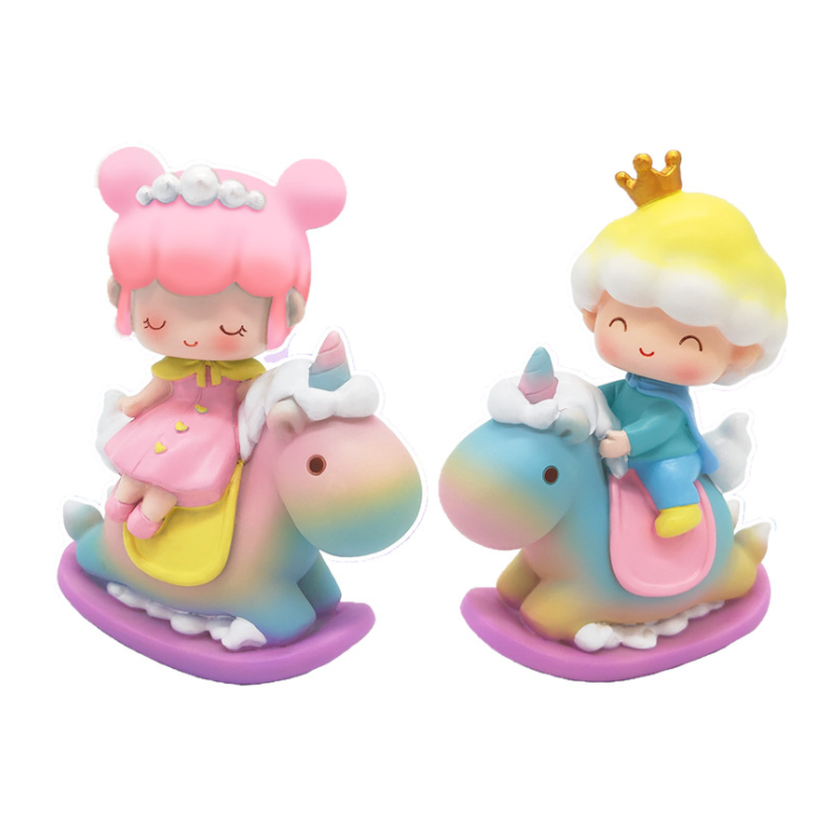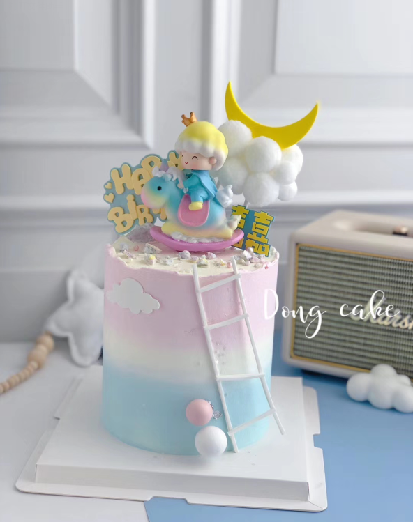 Cartoon Rainbow Mounted Head Ride Unicorn Doll Birthday Cake Decorated with Yellow Handy Little Prince