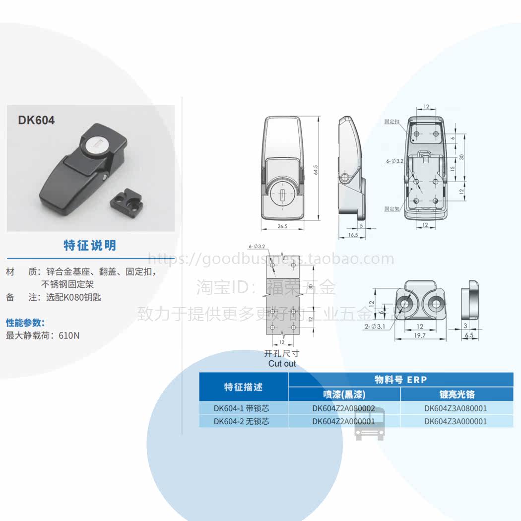 DK601 stainless steel seat buckle DK604 precision instrument box lock DKS passenger car express box motorcycle lock