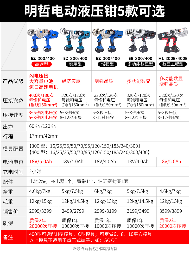 Mingzhe rechargeable hydraulic pliers EZ-300 400 crimping pliers electrical wire cutters two-in-one copper aluminum terminal crimping