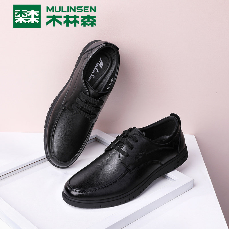 Mulinsen men's shoes business casual leather shoes autumn new men's leather soft bottom wild light middle-aged dad shoes