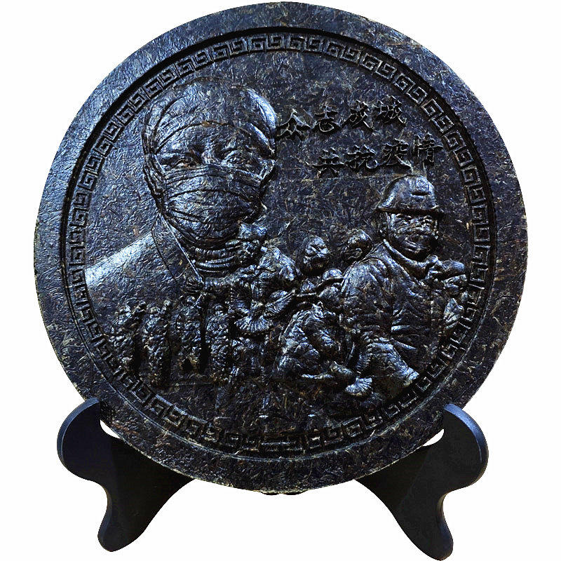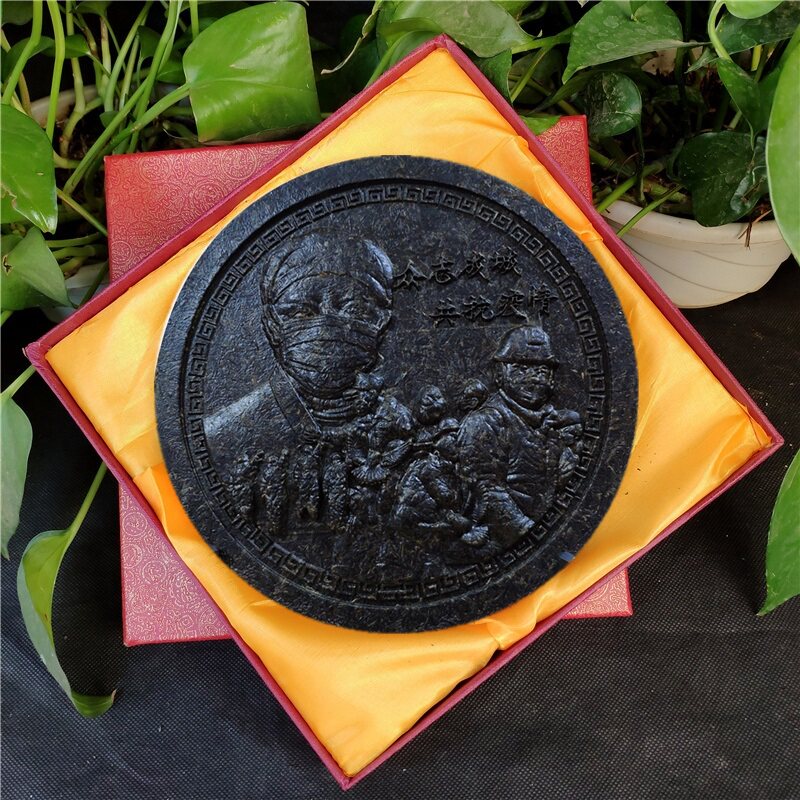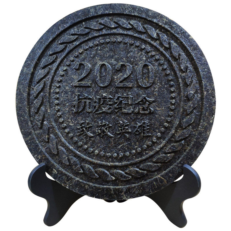 Pu'er tea raw tea tribute hero craft tea cake volunteer souvenir 2020 craft gift decoration tea carving decoration