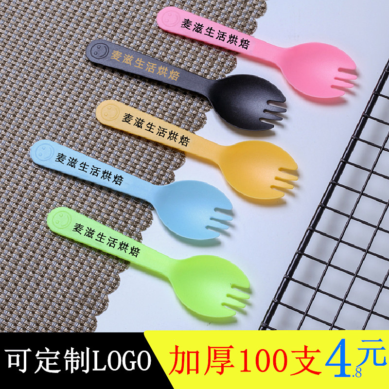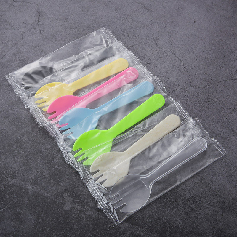 Disposable spoon plastic cake fork and spoon one-piece individually packaged fruit fork dessert small spoon ice cream thickened