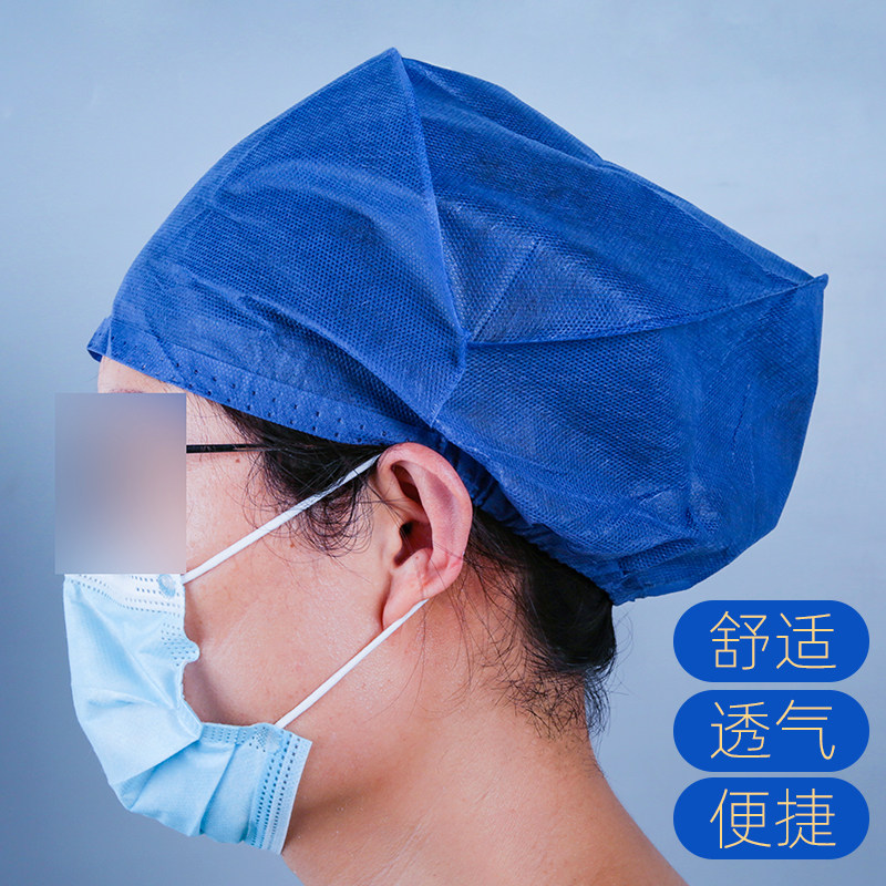 Thickened disposable doctor cap surgical cap non-woven cap nurse round flat cap oral dustproof dark blue