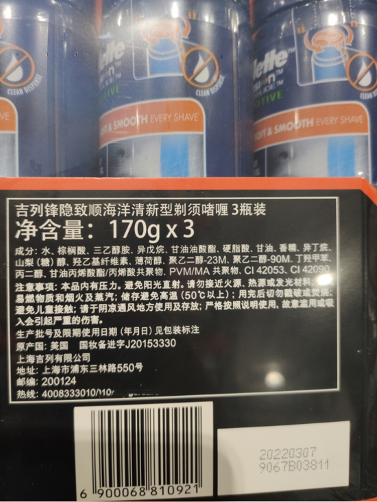 Shanghai COSTCO Buy Gillette Hidden Shave Gel Foam Men's Nursing Ocean Fresh 170g * 3