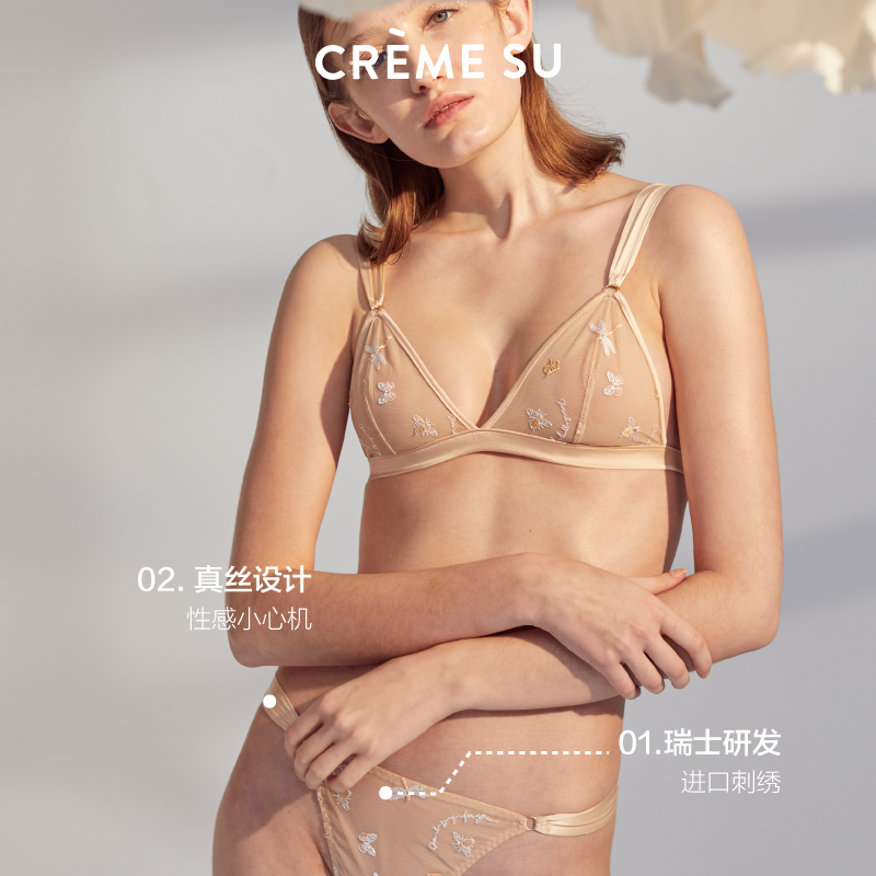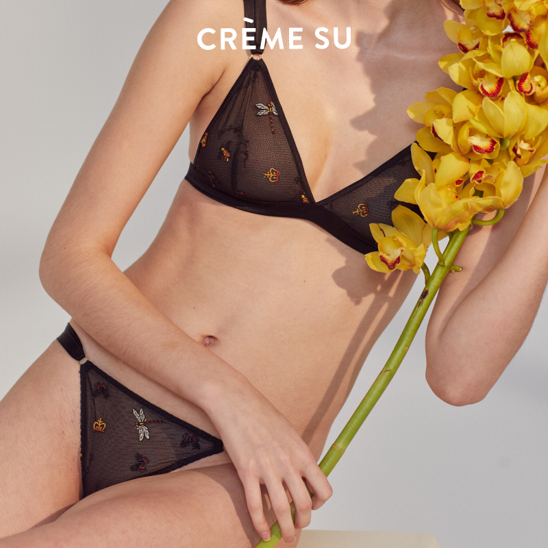 CremeSu Bee Embroidered BUZZING Briefs T Pants Silk Cotton Panties Thongs
