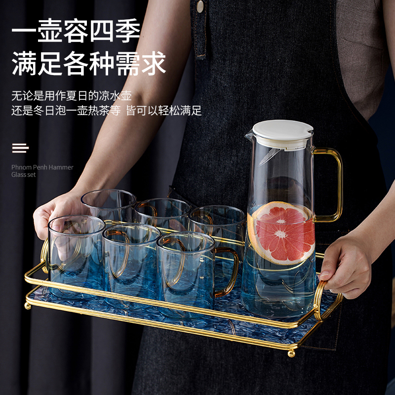 Nordic heat-resistant glass ins wind living room household cup set with handle Japanese net Red water cup Teacup